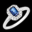 Ring White gold 9 carats - Blue Sapphire Baguette 0.5 Carats - Halo Diamond white
