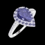 Ring White gold 9 carats - Blue Sapphire Pear 0.5 Carats - Halo Blue Sapphire - Setting Diamond white