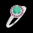 Ring White gold 18 carats - Emerald round 0.5 Carats - Halo Ruby - Setting Diamond white