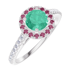 « L'ATELIER » NO. 170887Ring White gold 18 carats - Emerald round 0.5 Carats - Halo Ruby - Setting Diamond white 5