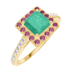 « L'ATELIER » NO. 170934Ring Yellow gold 9 carats - Emerald Princess 0.5 Carats - Halo Ruby - Setting Diamond white 4.6