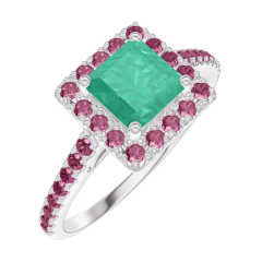 Ring White gold 18 carats - Emerald Princess 0.5 Carats - Halo Ruby - Setting Ruby