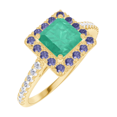 « L'ATELIER » NO. 170950Ring Yellow gold 9 carats - Emerald Princess 0.5 Carats - Halo Blue Sapphire - Setting Diamond white 4.6 (10)