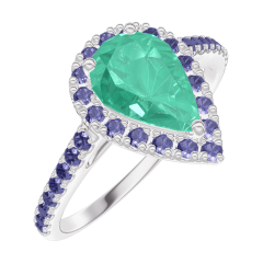 « L'ATELIER » NO. 171104Ring White gold 9 carats - Emerald Pear 0.5 Carats - Halo Blue Sapphire - Setting Blue Sapphire 5