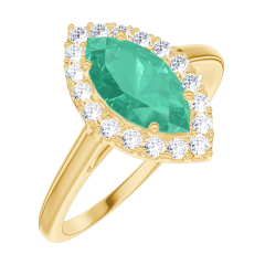 « L'ATELIER » NO. 171106Ring Yellow gold 9 carats - Emerald Marquise 0.5 Carats - Halo Diamond white
