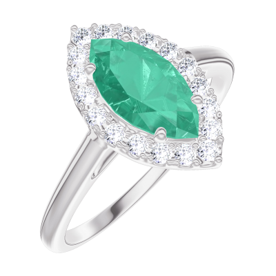 « L'ATELIER » NO. 171108Ring White gold 9 carats - Emerald Marquise 0.5 Carats - Halo Diamond white