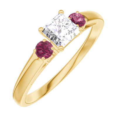 « L'ATELIER » NO. 180141Ring Yellow gold 18 carats - Laboratory Diamond Princess 0.3 Carats - Ring settings Ruby