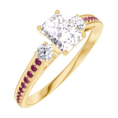 Ring Yellow gold 18 carats - Laboratory Diamond Baguette 0.3 Carats - Ring settings Laboratory Diamond - Setting Ruby