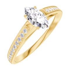 Ring Yellow gold 9 carats - Laboratory Diamond Marquise 0.3 Carats - Setting Laboratory Diamond