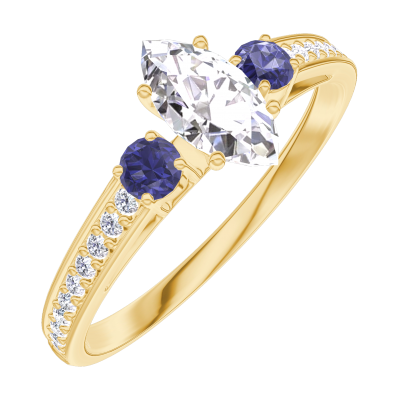 « L'ATELIER » Nº180565Ring Yellow gold 18 carats - Laboratory Diamond Marquise 0.3 Carats - Ring settings Blue Sapphire - Setting Laboratory Diamond