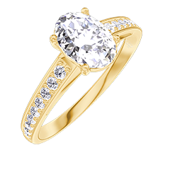 Ring Yellow gold 9 carats - Laboratory Diamond Oval 0.7 Carats - Setting Laboratory Diamond