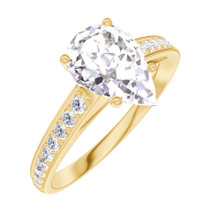 Ring Yellow gold 18 carats - Laboratory Diamond Pear 1 Carats - Setting Laboratory Diamond