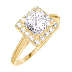 Ring Yellow gold 9 carats - Lab-grown diamond Princess 0.5 Carats - Halo Lab-grown diamond