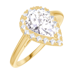 Ring Yellow gold 9 carats - Lab-grown diamond Pear 0.5 Carats - Halo Lab-grown diamond