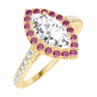 « L'ATELIER » Nº190262Ring Yellow gold 9 carats - Laboratory Diamond Marquise 0.5 Carats - Halo Ruby - Setting Laboratory Diamond
