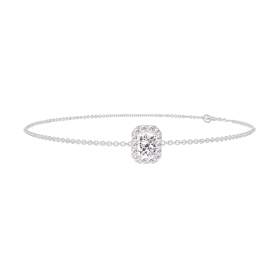 « L'ATELIER » Nº200075Bracelet White gold 18 carats - Diamond white Baguette 0.3 Carats - Halo Diamond white - Chain Rolo