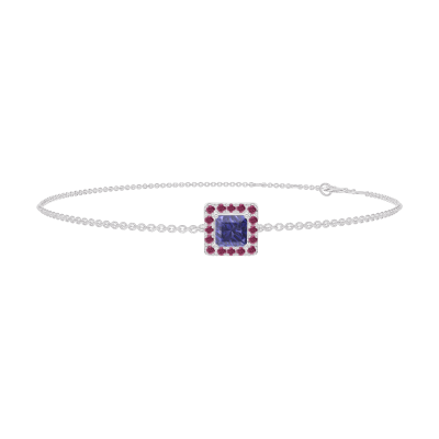 « L'ATELIER » Nº200627Bracelet White gold 18 carats - Blue Sapphire Princess 0.3 Carats - Halo Ruby - Chain Rolo