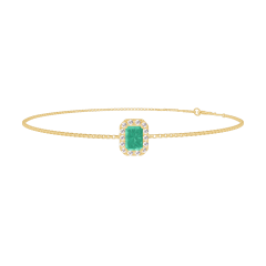 Bracelet Yellow gold 18 carats - Emerald Baguette 0.3 Carats - Halo Diamond white - Chain Venetian