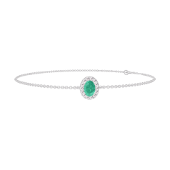 « L'ATELIER » NO. 200875Bracelet White gold 18 carats - Emerald Oval 0.3 Carats - Halo Diamond white - Chain Rolo