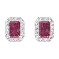 Earrings White gold 9 carats - Ruby Baguette 0.3 Carats (2 X) - Halo Diamond white