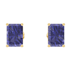 Earrings Yellow gold 9 carats - Blue Sapphire Baguette 0.3 Carats (2 X)