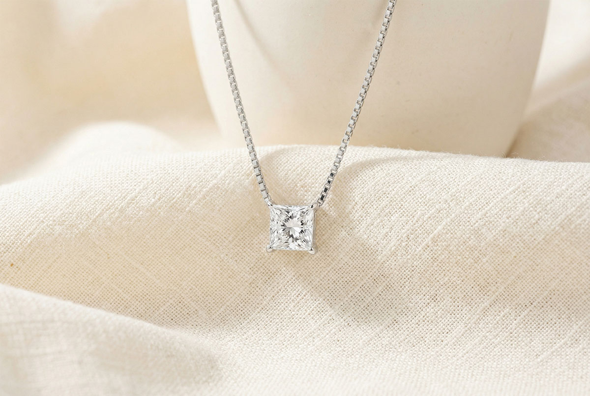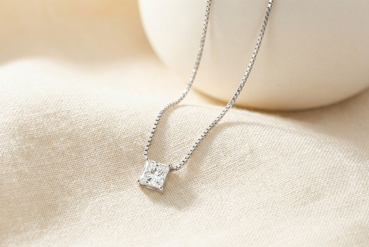 « L'ATELIER » NO. 201672Necklace White gold 9 carats - Laboratory Diamond Princess 0.3 Carats - Chain Venetian