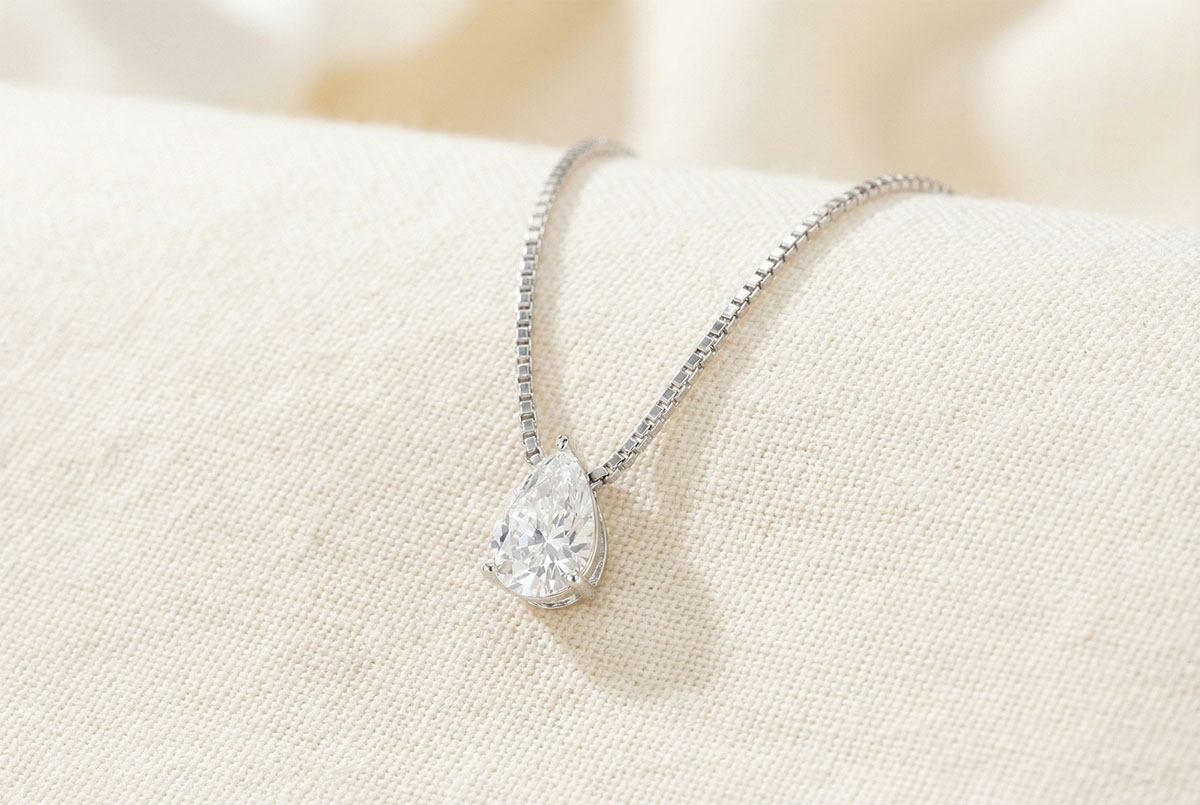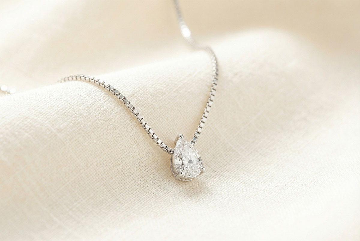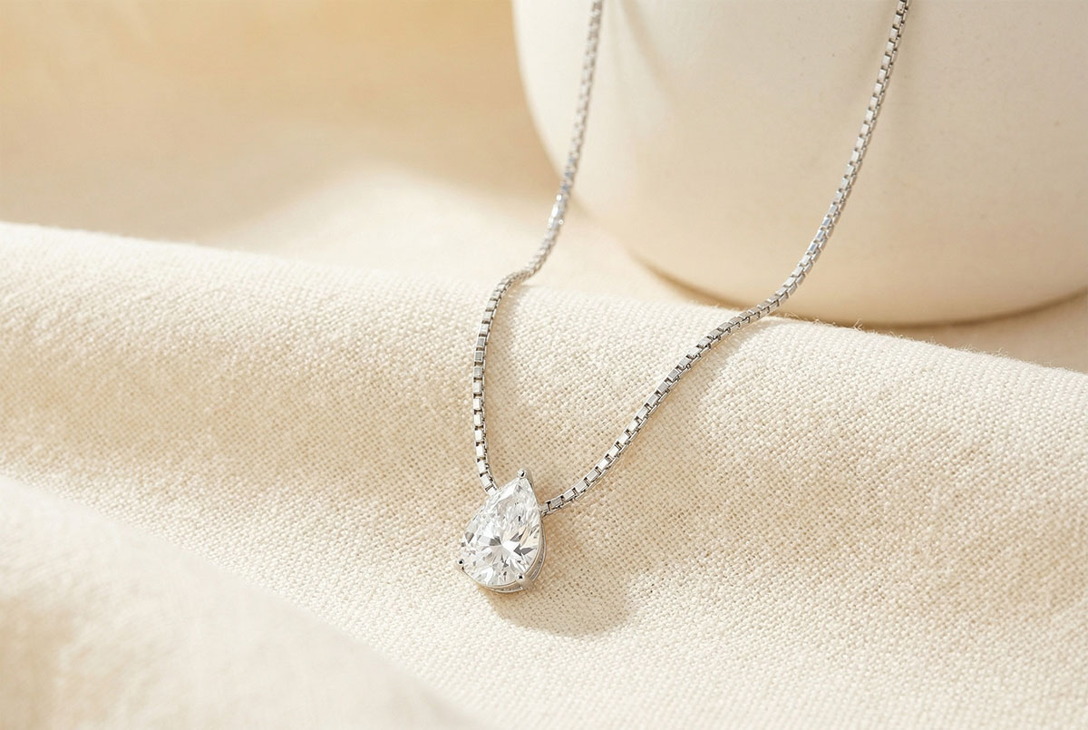 « L'ATELIER » NO. 201768Necklace White gold 9 carats - Laboratory Diamond Pear 0.3 Carats - Chain Venetian