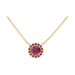 « L'ATELIER » NO. 201846Necklace Yellow gold 9 carats - Ruby round 0.3 Carats - Halo Ruby - Chain Venetian
