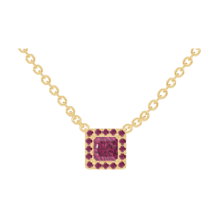 Necklace Yellow gold 9 carats - Ruby Princess 0.3 Carats - Halo Ruby - Chain Rolo