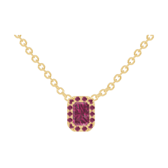Necklace Yellow gold 18 carats - Ruby Baguette 0.3 Carats - Halo Ruby - Chain Rolo