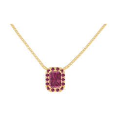Necklace Yellow gold 18 carats - Ruby Baguette 0.3 Carats - Halo Ruby - Chain Venetian