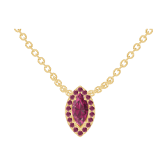 Necklace Yellow gold 9 carats - Ruby Marquise 0.3 Carats - Halo Ruby - Chain Rolo