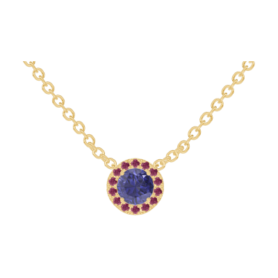 « L'ATELIER » Nº202033Necklace Yellow gold 18 carats - Blue Sapphire round 0.3 Carats - Halo Ruby - Chain Rolo