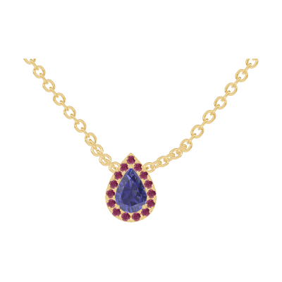 « L'ATELIER » Nº202162Necklace Yellow gold 9 carats - Blue Sapphire Pear 0.3 Carats - Halo Ruby - Chain Rolo 4.3