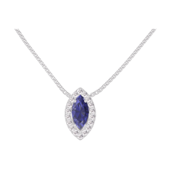 Necklace White gold 18 carats - Blue Sapphire Marquise 0.3 Carats - Halo Diamond white - Chain Venetian