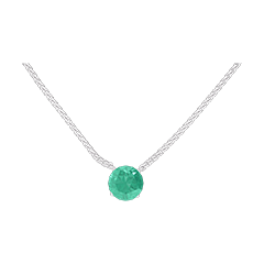 Necklace White gold 9 carats - Emerald round 0.3 Carats - Chain Venetian