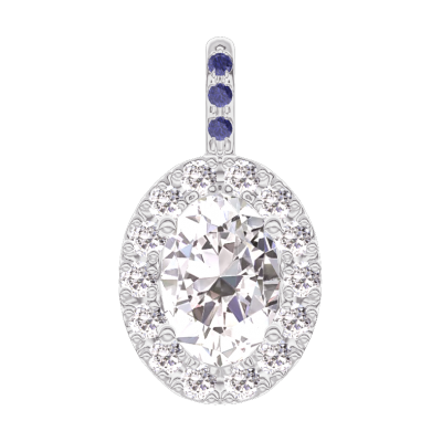 « L'ATELIER » NO. 203040Pendant White gold 9 carats - Diamond white Oval 0.3 Carats - Halo Diamond white - Setting Blue Sapphire - No Chain