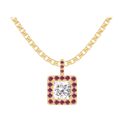 « L'ATELIER » NO. 203881Pendant Yellow gold 18 carats - Laboratory Diamond Princess 0.3 Carats - Halo Ruby - Setting Ruby - Chain Venetian