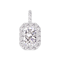 Pendant White gold 18 carats - Laboratory Diamond Baguette 0.3 Carats - Halo Laboratory Diamond - Setting Laboratory Diamond - No Chain