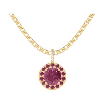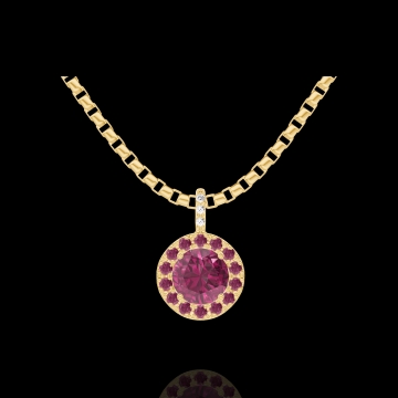 « L'ATELIER » Nº204837Pendant Yellow gold 18 carats - Ruby round 0.3 Carats - Halo Ruby - Setting Diamond white - Chain Venetian 4.3