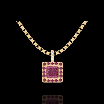 « L'ATELIER » Nº205029Pendant Yellow gold 18 carats - Ruby Princess 0.3 Carats - Halo Ruby - Setting Diamond white - Chain Venetian