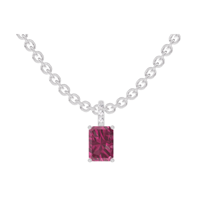 « L'ATELIER » NO. 205112Pendant White gold 9 carats - Ruby Baguette 0.3 Carats - Setting Diamond white - Chain Rolo