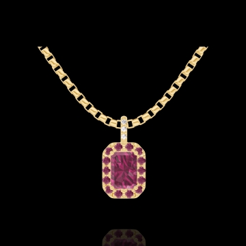 « L'ATELIER » Nº205221Pendant Yellow gold 18 carats - Ruby Baguette 0.3 Carats - Halo Ruby - Setting Diamond white - Chain Venetian