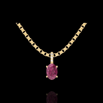 « L'ATELIER » Nº205317Pendant Yellow gold 18 carats - Ruby Oval 0.3 Carats - Setting Diamond white - Chain Venetian