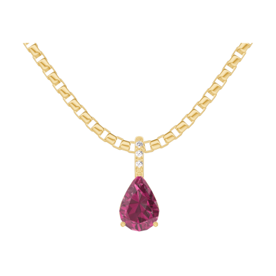 « L'ATELIER » Nº205510Pendant Yellow gold 9 carats - Ruby Pear 0.3 Carats - Setting Diamond white - Chain Venetian 4.8