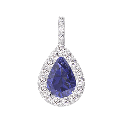 « L'ATELIER » Nº206679Pendant White gold 18 carats - Blue Sapphire Pear 0.3 Carats - Halo Diamond white - Setting Diamond white - No Chain