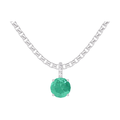 « L'ATELIER » Nº207047Pendant White gold 18 carats - Emerald round 0.3 Carats - Setting Diamond white - Chain Venetian 5