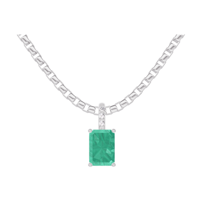 « L'ATELIER » Nº207432Pendant White gold 9 carats - Emerald Baguette 0.3 Carats - Setting Diamond white - Chain Venetian
