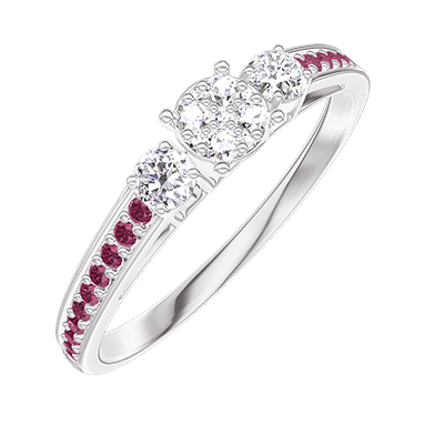 « L'ATELIER » NO. 209032Ring White gold 9 carats - Cluster of natural diamonds round equivalent 0.3 - Ring settings Diamond white - Setting Ruby 4.8