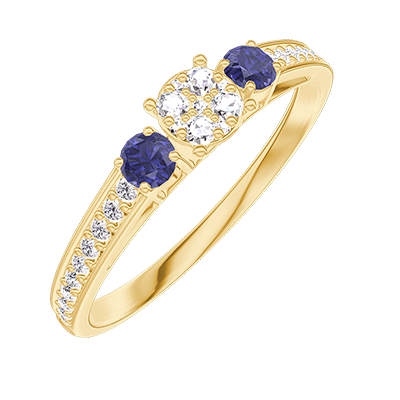 « L'ATELIER » NO. 209065Ring Yellow gold 18 carats - Cluster of natural diamonds round equivalent 0.3 - Ring settings Blue Sapphire - Setting Diamond white 4.8 (36)